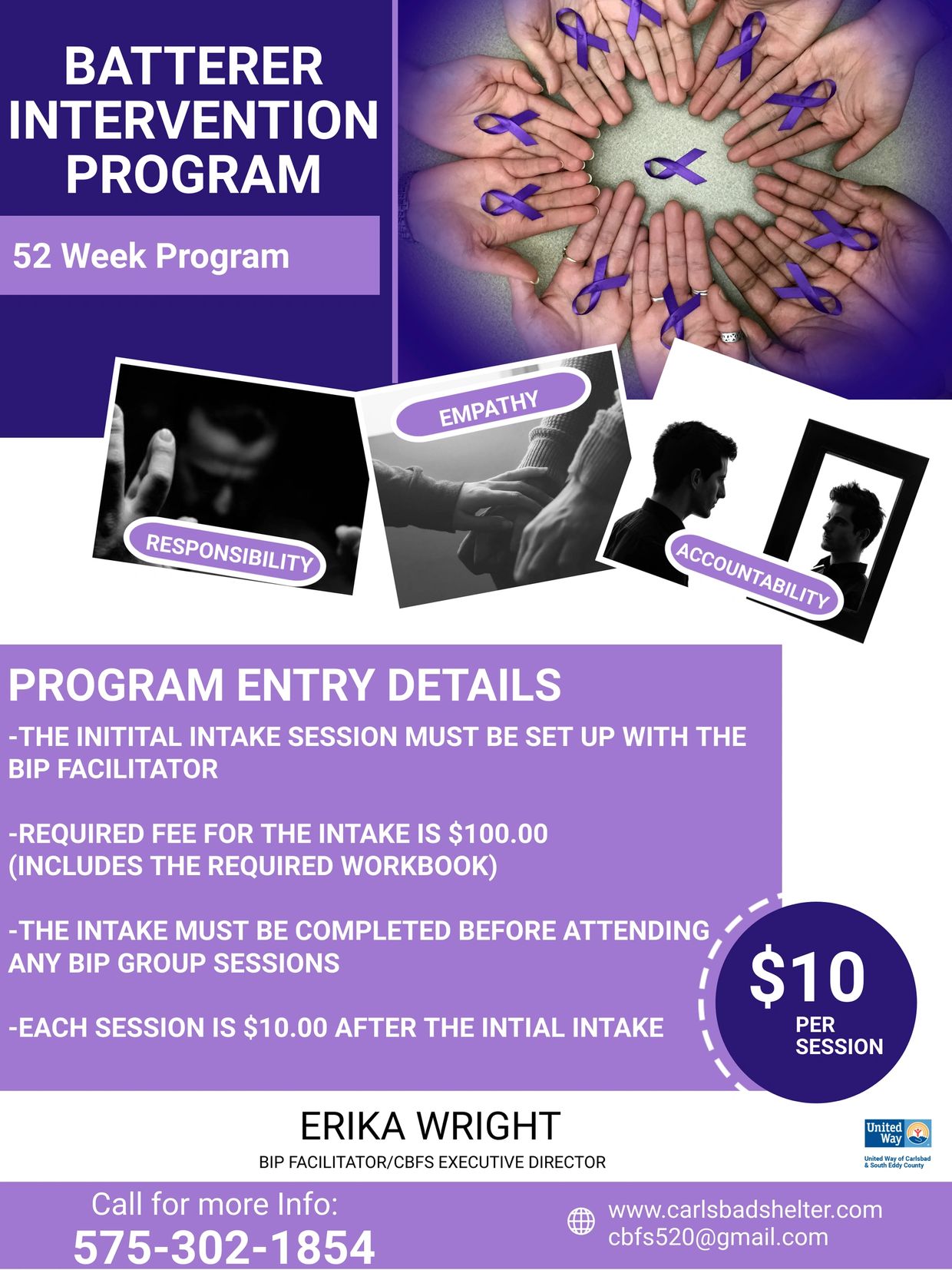 Batterer intervention programs are considered to be an important part of a comprehensive approach to domestic violence, and many courts order offenders to attend these programs while on probation for a domestic violence offense. The goal of our intervention program is to teach abusive partners to develop empathy for their victims, identify and self-monitor negative thoughts, and to identify and interrupt the negative self-talk that often precedes incidences of violence, in order to prevent further abuse. The program also aims to teach gender equality in relationships and typically teach participants to identify various forms of abuse, recognize and detail the type of abuse they have engaged in, take responsibility for the abuse, and find alternatives to violence, often helping participants learn to develop a non-abusive response to behavior that they might ordinarily respond to in an abusive manner.